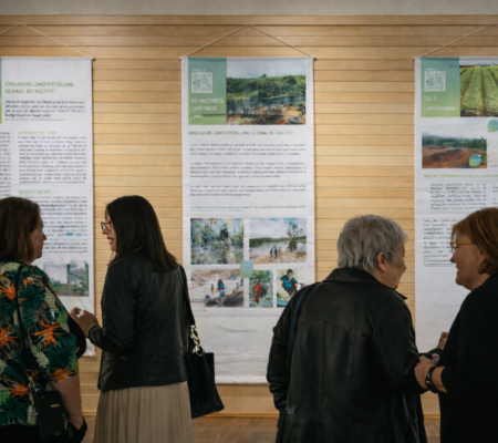 Ausstellung über Landraub und Flächenverbrauch durch unser Konsumverhalten.
