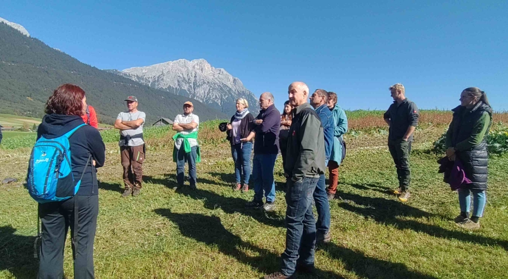 Organisiert vom Klimabündnis Tirol im Rahmen des Interreg Alpine Space Projekts „SOIL: Our Invisible Ally“, brachte die Veranstaltung „Bodenverbesserung in der landwirtschaftlichen Praxis für klimafitte Betriebe“ Landwirt:innen, Klimabeauftragte und Bodeninteressierte zusammen, um den Boden im wahrsten Sinne des Wortes zu begreifen. In einem Stationenbetrieb wurden Bodenprofile untersucht, die Entstehung des Bodens erklärt und die komplexen Symbiosen zwischen Pflanzen, Pilzen und Mikroorganismen veranschaulicht.